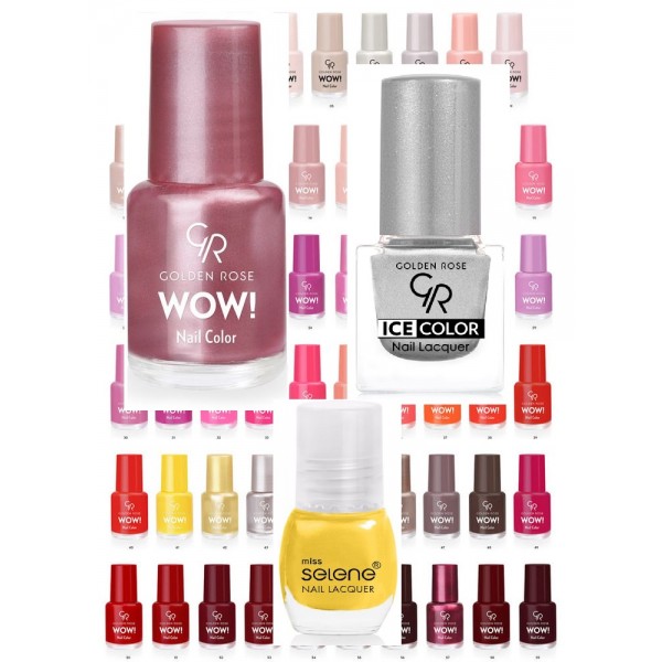 Jedná se o sadu různě barevných laků na nehty (barvy jsou různé - nejen ty, co jsou na obrázku) Golden Rose - konkrétně jsou to laky: Golden Rose WOW nail polish, Golden Rose ICE COLOR nail polish a MISS SELENE nail polish.