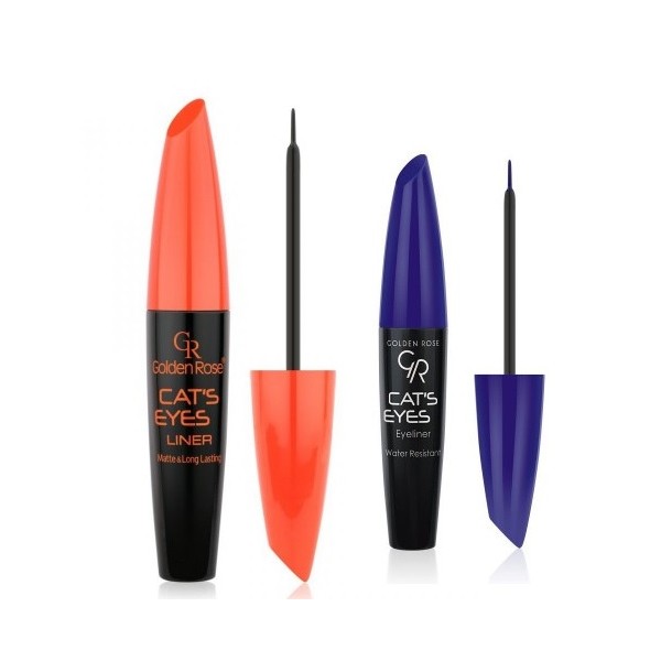 Oční linky ve dvou variantách: černé a modré. Černé oční linky jsou matné a dlouhotrvající. Oční linky v modrém odstínu jsou voděodolné.