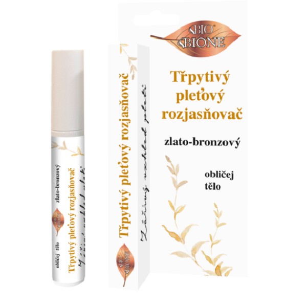 Popis produktu: Bione Cosmetics pleťový rozjasňovač zlato-bronzový