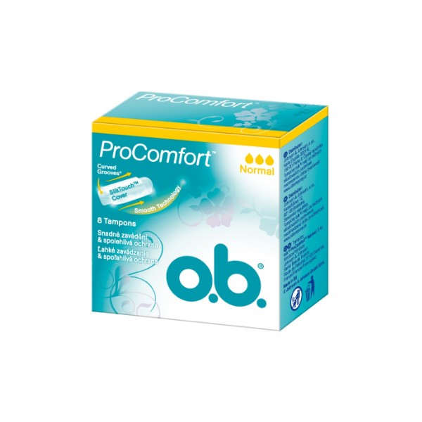 Tampony O.b. kombinují technologii stočených drážek, které zajistí spolehlivou ochranu a unikátní povrch Silk touch pro snadné zavádění. Jsou vhodné pro slabé až střední krvácení. Balení obsahuje 8 kusů. Upozornění: před použitím si přečtěte přiložený leták, který naleznete v balení.