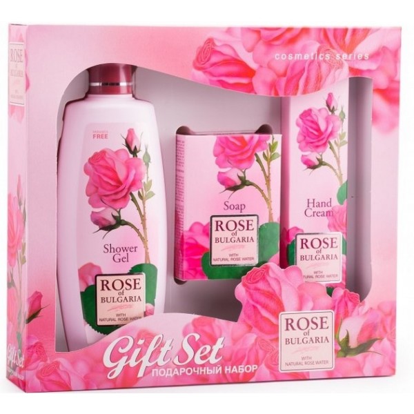 Dárková sada obsahuje: sprchový gel 330 ml, příroní růžové mýdlo 100g a krém na ruce 75 ml. Výrobní číslo: 00124005