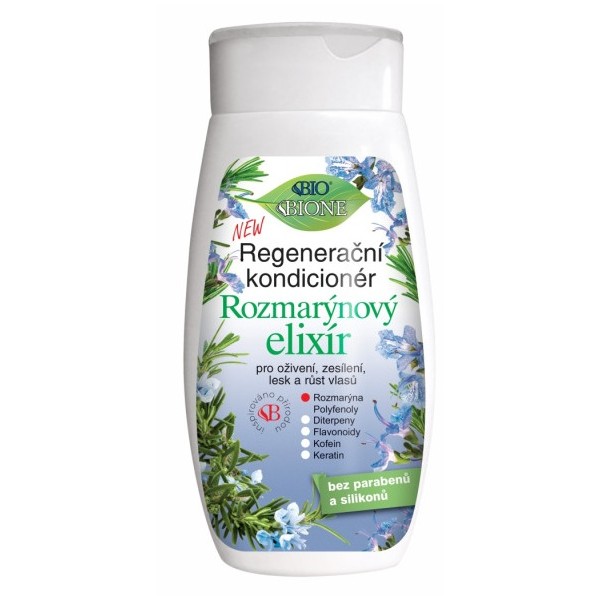 Bylinný vlasový oplachový kondicionér s extraktem z rozmarýnu. Kromě rozmarýnového extraktu obsahuje ještě polyfenoly, flavonoidy, diterpeny, keratin a kofein. Je bez obsahu silikonů a parabenů, v BIO formulaci. Jedná se o velmi jemný a vydatný kondicionér pro výživu vlasů. Obsažený keratin účinně zregeneruje a zpevňuje již vyrostlé vlasy. Rozmarýnový extrakt obsahuje řadu sločenin, které mají příznivý vliv na pokožku hlavy. Extrakt vykazuje protimikrobiální a hydratační účinky, protizánětlivé účinky, posílení vlasů, zvýšení lesku a výživu.