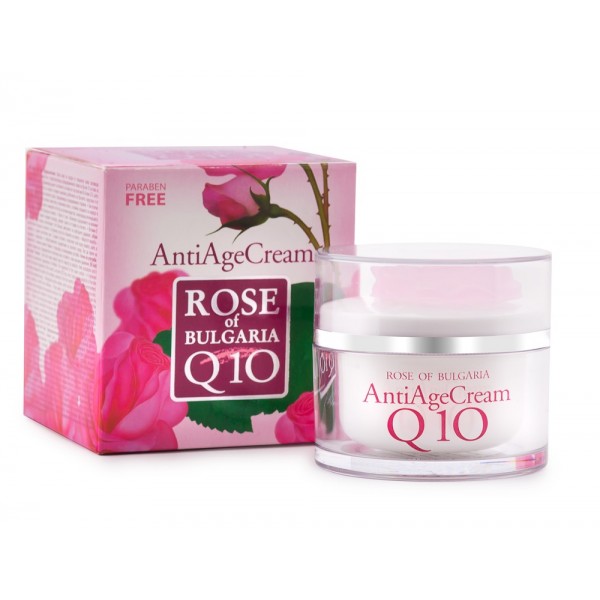 Pleťový krém Anti-age a obsahem koenzymu Q10 a růžové vody. Dalšími účinnými látkami v krému jsou makadamový olej, vitamín E, jojobový olej a biologický aktivní komplex. Obsah koenzymu Q10 redukuje hloubku vrásek a zlepšuje pružnost pleti. Také pleť chrání před vnějšími vlivy. Růžová voda podporuje regeneraci a ochrannou funkci pleti. Vitamín E působí antioxidačně a jojobový a makadamový olej jsou hydratační složky a kůži vyživují. Biologicky aktivní komplex pleť osvěžuje a zanechává ji jemnou. Výrobní číslo: 00113003