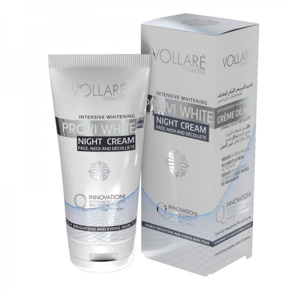 Intenzivně bělící noční krém na obličej, krk a dekolt s unikátním rozjasňujícím komplexem. Snižuje zabarvení a flíčky různého původu. Snižuje nerovnoměrnou pigmentaci a viditelně redukuje viditelnost pih. Bioaktivní komplex Provi White TM je moderní receptura, která odstraňuje příčiny vzniku pigmentace, prostřednictvím účinného snížení produkce melaninu. Výrazně rozjasňuje a sjednocuje tón pleti. Pro dosažení co nejlepších výsledků lze kombinovat s produkty z řady Provi White. Krém napomáhá bojovat proti vráskám, zvyšuje pružnost pokožky, hloubkově ji vyživuje a dokonale hydratuje. Stimuluje regeneraci v noci během spánku, kdy je proces obnovy buněk nejintenzivnější.