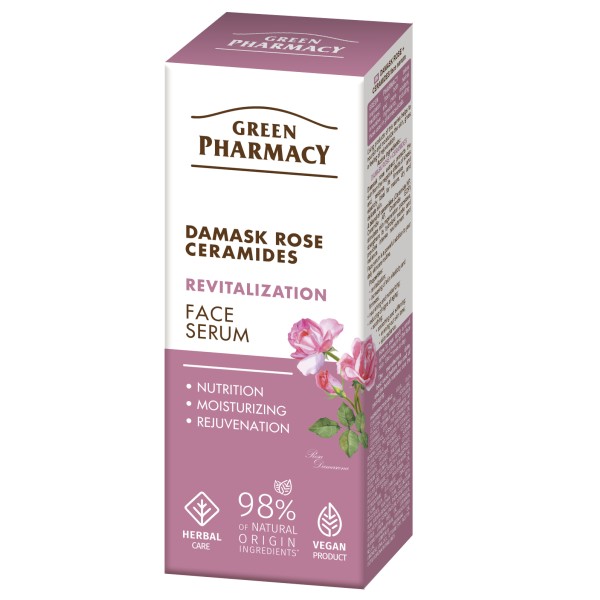 Pleťové sérum s extraktem z damašské růže a ceramidy. Extrakt z damašské růže pomáhá udržovat optimální úroveň hydratace a je tak vhodným pomocníkem pro suchou pleť. Ceramidy stimulují regeneraci pleti a posilují hydrolipidovou vrstvu pleti. Pleťové sérum intenzivně hydratuje a vyživuje, snižuje známky stárnutí, zvyšuje elasticitu a pevnost, sjednocuje barevný tón pleti, poskytuje zdravý a zářivý vzhled suché a zralé pleti. Obsahuje 98% složek přírodního původu.