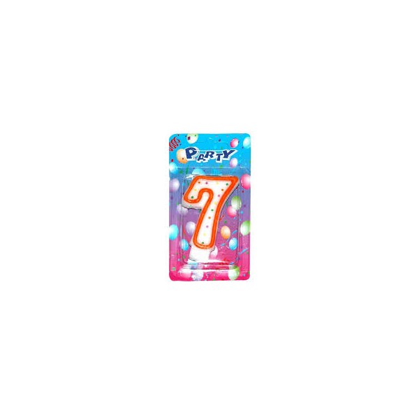 Dortová svíčka, ve tvaru číslice "7", která je opatřena plastovým stojánkem - pro pohodlné a pevné umístění na dort. Svíčka i s držákem je vysoká cca 9 cm. Svíčka není určená ke konzumaci. Svíčka je dodána v náhodné barevné kombinaci (nelze si ji vybrat) a to dle toho, jaká je právě skladem.