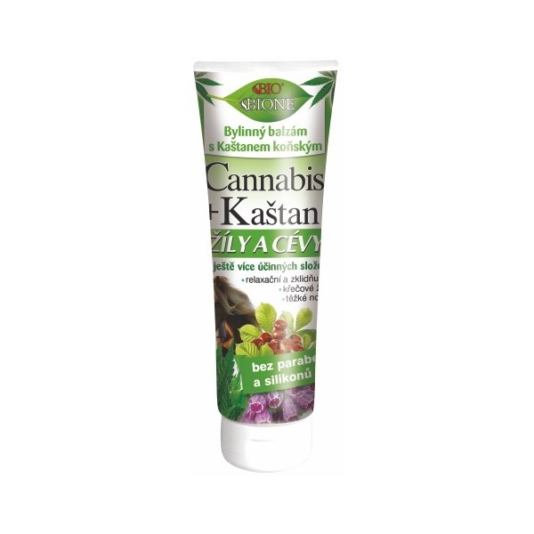 Bylinný balzám vhodný na žíly a cévy s kaštanem koňským a zvýšeným obsahem oblíbených účinných složek. Bylinný balzám na unavené nohy je emulgel s "koňskou silou" kaštanu koňského a extraktu ze semen červeného vína. Extrakt kaštanu, vína, mentol, kafr, eukalyptus a další složky působí relaxačně a blahodárně na unavené těžké nohy se sklonem k tvorbě křečových žil. Používá se k relaxační a uvolňovací masáži pokožky unavených a těžkých nohou, při svalovém zatuhnutí, pro relaxační masáže natažených šlach a při různých zhmožděninách. Masáží se pokožka i ostatní tkáně prokrví a prohřejí. Uvolní se svalový tonus, pročistí se lymfatické dráhy. Balzám obsahuje nejen konopný olej, ale i extrakt z celé listové části rostliny. Extrakt i olej Cannabis je znám svým používáním v lidovém léčitelství pro své údajné protizánětlivé, antibakteriální, protialergické a regenerační vlastnosti na pokožku. Olej ze semínek rostliny Cannabis se v lidovém léčitelstvá s oblibou doporučuje na různé dermatitidy, u atopického ekzému, lupénky, akné a oparů. Má uklidňující a zvláčňující účinky. Chrání pokožku před vysoušením a praskáním. Dále obsahuje hydratační glycerin, rostlinné bambucké máslo, panthenol, allantoin a vitamín E. Polyfenolické látky a escin z rostlinných extraktů se s oblibou tradičně používají jako složky mazání na křečové žíly. Balzám se rychle vstřebává a zanechává příjemný vláčný nemastný pocit.