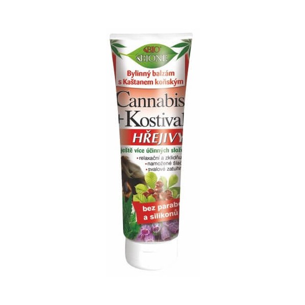 Bylinný balzám s kaštanem koňským a hřejivým efektem. Se zvýšeným obsahem oblíbených účinných složek. Hřejivý balzám na unavené tělo je emulgel s "koňskou silou" kaštanu koňského a kostivalu lékařského. Extrakt kaštanu, kostivalu, boswellie a další složky působí relaxačně a blahodárně na pohybový aparát těla. Používá se k relaxační a uvolňující masáži pokožky v oblastech kloubů, na unavené těžké nohy, při svalovém zatuhnutí, pro relaxašní masáže natažených šlach a při různých dalších zhmožděninách. Masáží se pokožka i ostatní tkáně prokrví a prihřejí. Uvolní se svalový tonus. Na pokožce vytváří hřejivý efekt, který uvolnění posílí. Balzám obsahuje nejen konopný olej, ale i extrakt z celé listové části rostliny. Tím dodává přípravku unikátnost a spotřebiteli maximum cenných látek z této výjimečné rostliny. Vedle nenasycených mastných kyselin, fytosterolů, fosfolipidů dodává i řadu antioxidantů, biominerálů, vitamínů, karotenoidů a chlorofylů. Je obohacen o účinnou složku MSM. Extrakt i olej Cannabis je znám svým používáním v lidovém léčitelství pro své údajné potizánětlivé, antibakteriální, protialergické a regenerační vlastnosti na pokožku. Olej ze semínek rostliny Cannabis se v lidovém léčitelství s oblibou doporučuje na různé dermatitidy, u atopického ekzému, lupénky, akné a oparů. Má uklidňující a zvláčňující účinky. Chrání pokožku před vysoušením a praskáním. Dále obsahuje hydratační glycerin, rostlinné bambucké máslo, panthenol, allantoin a vitamín E. Rychle se vstřebává a zanechává příjemný nemastný pocit.