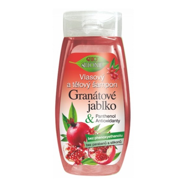 Popis produktu: Bione Cosmetics vlasový a tělový šampon granátové jablko