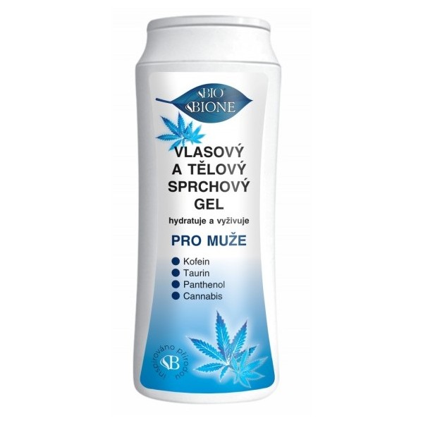 Vlasový a tělový sprchový gel pro muže. Dokonale čistí, zjemňuje, regeneruje a hydratuje pokožku i vlasy. Vytváří bohatou pěnu, dodává pokožce svěžest a energii. Extrakt z konopí má protizánětlivé a hojivé účinky. Kofein dodává pokožce energii. Panthenol pokožku zklidňuje a tauin napomáhá růstu vlasů a zabraňuje jejich vypadávání.