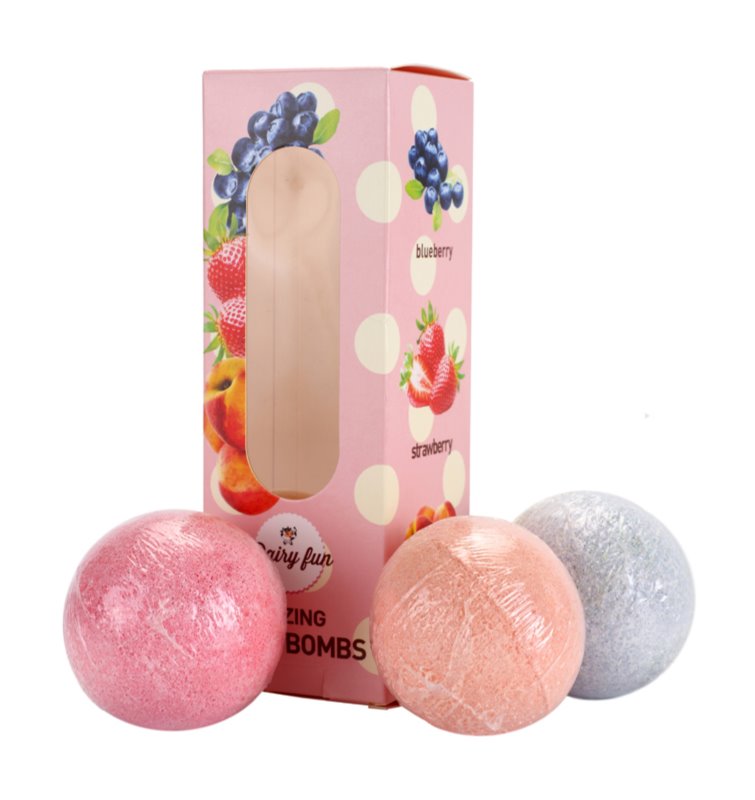 Související zboží k produktu: DAIRY FUN šumivé koule do koupele (borůvka, jahoda, broskev)