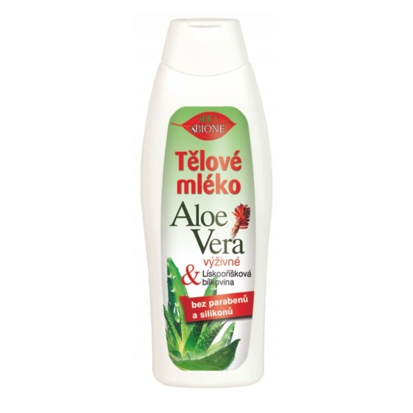 Popis produktu: Bione Cosmetics tělové mléko Aloe Vera výživné s lískooříškovou bílkovinou