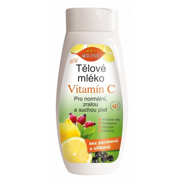 Tělové mléko s obsahem vitamínu C je vhodné na normální, zralou a suchou pokožku. S klíčkovým olejem, panthenolem, glycerinem a vitamíny. Chrání před volnými radikály. Mírně potlačuje tvorbu kožního maziva a tím pokožku sjednocuje a rozjasňuje. Obsahuje též hydratační glycerin, bambucké máslo, panthenol, allantoin vitamín E a další. Chrání a regeneruje pokožku a zároveň poskytuje ochranu před popraskáním a vysušením.