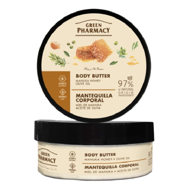 Tělové máslo s obsahem olivového oleje a extraktem z medu zanechává hydratovanou, pružnou a jemnou pokožku celého těla. Olivový olej zlepšuje celkový stav pokožky a hydratuje ji. Manukový med kontroluje rovnováhu lipidů. Obsahuje až 97% složek přírodního původu.