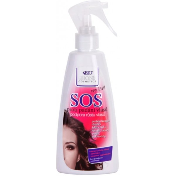 SOS sprej proti padání vlasů. Unikátně a komplexně spojuje účinné látky, které chrání vlasy před vypadáváním. Podporuje zrychlený růst vlasů a zachraňuje i vlasy, které by jinak již vypadly, jelikož k nim rychle přirůstají nové a tím se vlasový porost také zahustí. Sprej účinně změkčuje vlasovou pokožku, a usnadňuje vstřebávání živin. Doporučujeme vlasy rozhrnout, aby byla viditelná pokožka a poté ji nastříkat z 5-8 cm. Poté rukou vmasírujte do pokožky a opakujte proces 5x týdně po dobu 3 měsíců. Sprej působí pouze na vlasovou pokožku, neaplikujte jej přímo do vlasů.