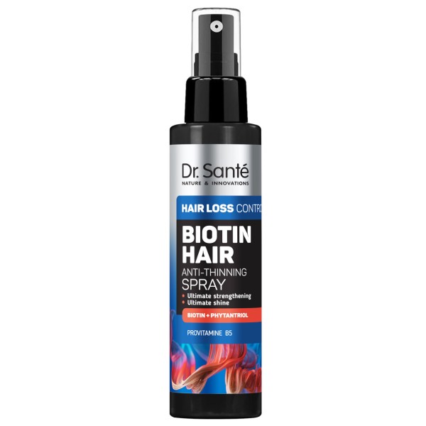 Sprej proti ztenčování vlasů s obsahem biotinu a provitaminu B5. Biotin napomáhá růstu vlasů a působí jako prevence proti vypadávání. Provitamin B5 posiluje vlasy a dodává jim hydrataci, elasticitu, lesk a snižuje jejich vypadávání. Je idální pro lidi, kterým řídnou vlasy. Pomáhá zpevňovat vlasové vlákno, zlepšovat celkovou kvalitu vlasů, zvětšit objem a podpořit regeneraci vlasů.