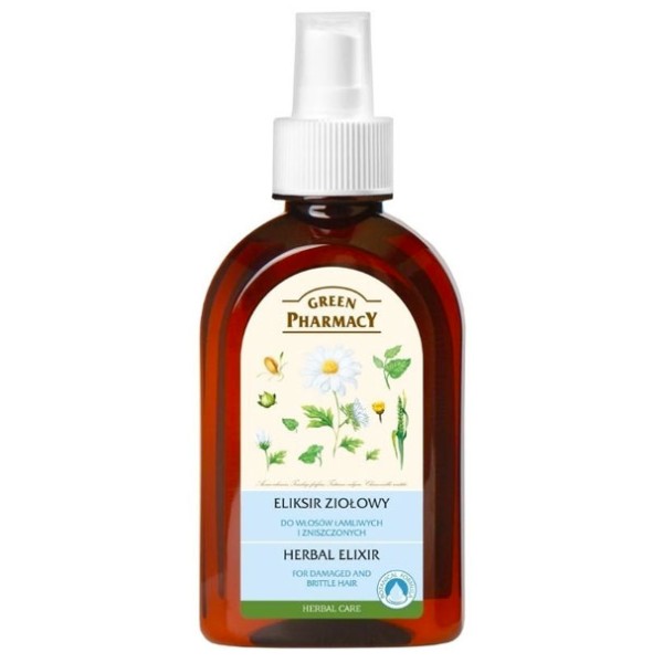 Bylinný elixír posiluje, obnovuje a snižuje vypadávání vlasů, výskyt lupů a seboreu. Výtažek z heřmánku, přesličky a pšeničných klíčků vyživuje pokožku vlasů a dodává jim vitalitu po celé jejich délce. Vlasy se stávají hustější, zdrav, pružné a lesklé.