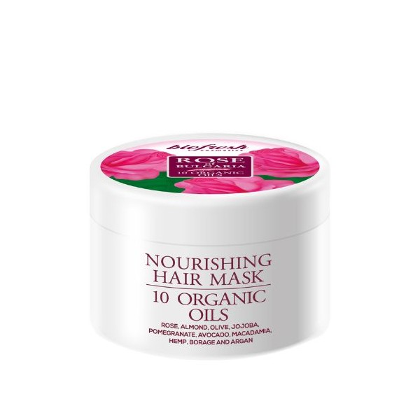 Vlasová maska s obsahem 10 olejů, která dokonale pečuje o suché a poškozené vlasy. Obsahuje olej: růžový, mandlový, olivový, jojobový, avokádový, makadamový, konopný, arganový, brutnákový a olej z granátového jablka. Vlasy zanechá vyhlazené, regenerované, lesklé a plné síly.