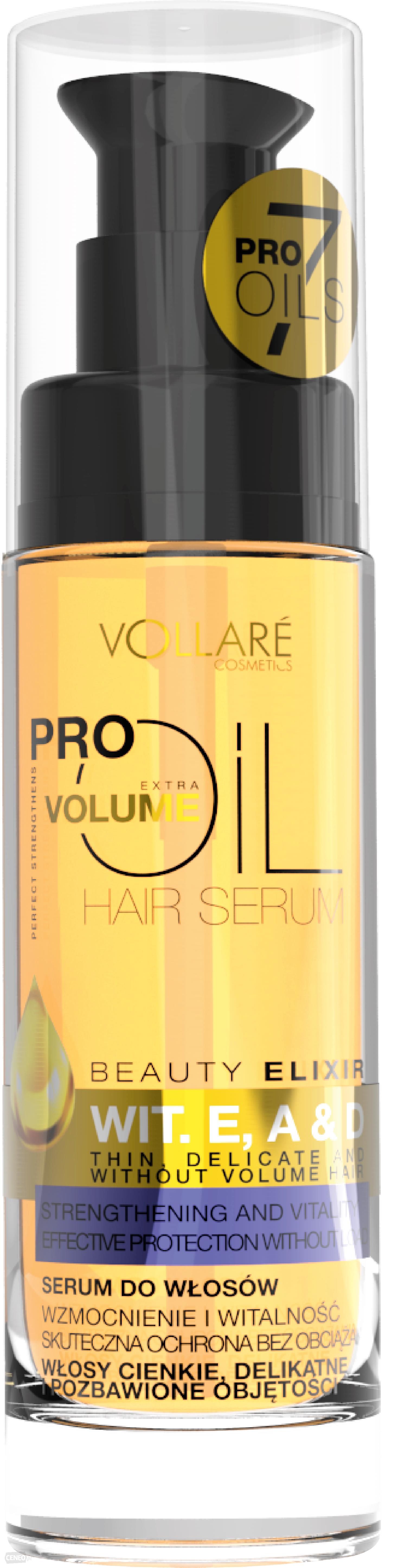 Sérum na vlasy, které obsahuje vitamíny E, A a D. Je určené pro objem vlasů. Je vhodné zejména pro tenké, jemné a slabé vlasy. Obsahuje arganový, olivový, kokosový, makadamový, lněný, slunečnicový a avokádový olej. Posiluje vlasy efektivně a bez zatížení. Poskytuje správné množství živin a zajišťuje optimální ochranu. Vlasy budou oživené, měkké na dotek, lesklé a bez zatížení.