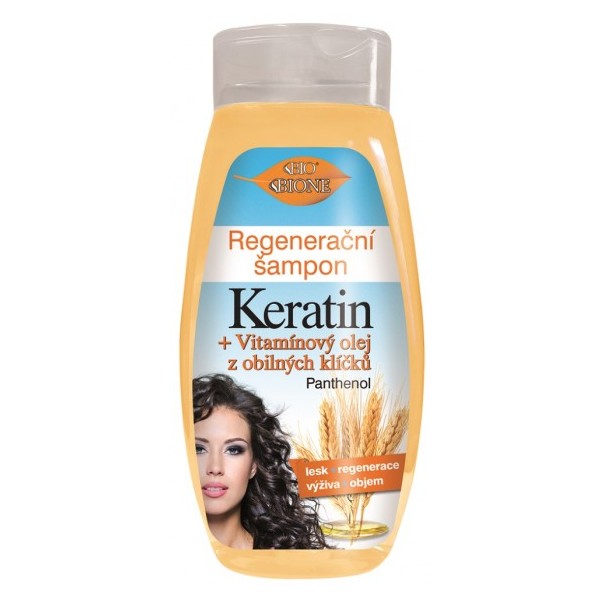 Popis produktu: Bione Cosmetics regenerační šampon keratin s olejem z obilných klíčků