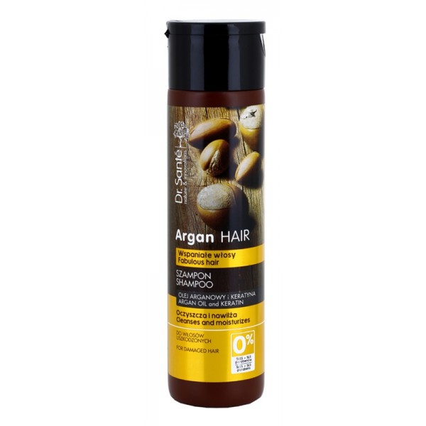 PRODUKT S PROŠLOU DOBOU TRVANLIVOSTI. Šampon na vlasy s keratinem a arganovým olejem. Je vhodný zejména pro poškozené vlasy. Díky arganovému oleji a keratinu obnovuje strukturu vlasů zevnitř i zvenku. Proniká hluboko do vlasů a zpevňuje je. Zabraňuje třepení konečků a dlouhodobě udržuje vlhkost, čímž zvyšuje pružnost vlasů. Vlasy vyhlazuje a chrání je před negativními vlivy okolí. Díky pšeničným bílkovinám snižuje křehkost až o 80%. Vlasy zanechává hedvábně jemné a krásné na pohled.